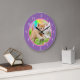 Reloj Redondo Grande Gatito y conejo con arcoiris