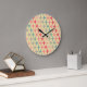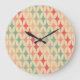 Reloj Redondo Grande Geométrico Retro: Patrón de cosecha diagonal.