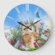 Reloj Redondo Grande Ginger kitten jugando con una mariposa