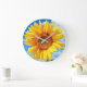 Reloj Redondo Grande Girasol amarillo y abejas en el cielo azul - veran