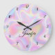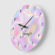 Reloj Redondo Grande Girly Vibrant Pastel Holographic Swirl Design