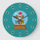Reloj Redondo Grande Globe de nieve con búho de Santa Claus