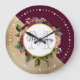 Reloj Redondo Grande Gold Marble Pattern and Burgundy Floral Monogram