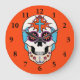 Reloj Redondo Grande Gráfica de cráneo de azúcar