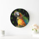 Reloj Redondo Grande Gran Naranja y loro Verde azulado en un trozo