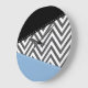 Reloj Redondo Grande Gris Zigzag, Gris Chevron, Zigzag Pattern, Azul