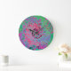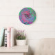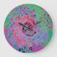 Reloj Redondo Grande Groovy verde rosa y limón Resumen Swirt retro
