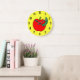 Reloj Redondo Grande Gusano verde de Apple rojo