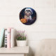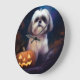Reloj Redondo Grande Halloween Shih Tzu con calabazas aterradoras