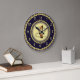 Reloj Redondo Grande Harp ~ Musical Scroll ~ Oro/Azul marino ~