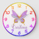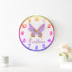 Reloj Redondo Grande Hermosa mariposa morada y dorada