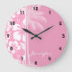 Reloj Redondo Grande Hibiscus tropical rosa de clavel; Palm de verano