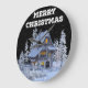 Reloj Redondo Grande Hogar nevado en invierno Feliz Navidad