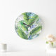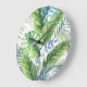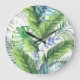 Reloj Redondo Grande Hojas de palma acuarelas, fondo exótico sin costur