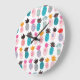 Reloj Redondo Grande Hojas de piña coloridas, doodle tropical.