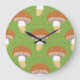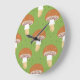 Reloj Redondo Grande Hongos otoñales: patrón sin costuras verde.