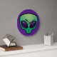 ilustracion personalizado de cabeza alienígena con grandes ojos oscuros. Etiquetas: alienígena, personalizado, ojo, verde, humor, icono, marciano, monstruo, espacio, vector, cósmico, exterior, cifi, ciencia ficción