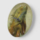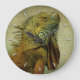 iguana verde con fondo verde en las 24 horas. Encontrado comúnmente en cautiverio como mascota debido a su disposición tranquila y colores brillantes, puede ser exigente para cuidar adecuadamente. Las necesidades de espacio y la necesidad de una iluminación y un calor especiales pueden resultar difíciles para un aficionado a la afición.