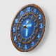 Celebrate your faith with the high-energy and modern aesthetic of this radiant religious wall clock. The central face features a glowing light-blue cross set against a deep navy backdrop with a vibrant sunburst effect. This central icon is framed by intricate faux-metal scrollwork and a secondary outer ring of ornate leaf-style accents. While the layered frames beautifully mimic the appearance of dark-stained timber and the numerals appear to be glowing neon, this is a lightweight and durable graphic timepiece rather than actual wood or electric lighting. The brilliant blue numeric markers provide exceptional contrast against the dark wood-grain background, ensuring the time is easily readable. This polished timepiece serves as a sophisticated focal point for a study, living room, or sanctuary, making it a perfect self-gift for those who appreciate bold, professional spiritual art.
