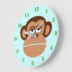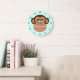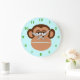 Un divertido reloj de pared verde claro con números verdes, y un ilustracion digital de un mono coqueto. Disponible en otras opciones. Visite nuestra tienda para más niños y otros regalos únicos.
