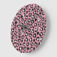 Reloj Redondo Grande Impresión animal, leopardo rosado, puntos de chita