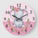 Reloj Redondo Grande Impresión de elefante rosa con harina