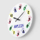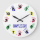 ¡Este reloj adorable parecerá grande dondequiera! Diversos handprints de las características en cada uno de los números en colores vibrantes y personalizados con su opción de nombres. ¡Grande para un cuarto de niño, para un profesor de arte y más!