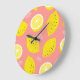 Reloj Redondo Grande Impresión de limón, brillante patrón de verano sin