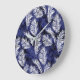 Hojas de palmera blancas en un fondo azul índigo, recubiertas con más palmeras azules.