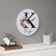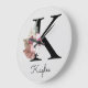 Reloj Redondo Grande Inicial Floral Boho Rosa Monograma K
