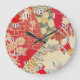 Reloj Redondo Grande Japanese KIMONO Textile, Floral Pattern