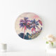 Reloj Redondo Grande Jardín tropical, palmeras al atardecer.
