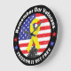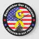 La cinta amarilla y la bandera de Iwo Jima izando con el fondo de la bandera estadounidense, y los mensajes de "Recuerda a nuestros veteranos" y "LA LIBERTAD NO ES LIBRE" para honrar y recordar a nuestros veteranos que sirvieron para Estados Unidos.