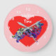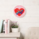 Silueta de perro Collie borde con mariposas coloradas rojas, azules y amarillas patrón abstracto en el corazón de amor rojo con decoración de reloj de fondo rosa. Adorable regalo del Día de San Valentín para cualquier mamá de perro o padre amante de mascotas.