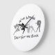 Las mujeres salvajes no entienden el Blues. "Mujer salvaje" está escrito en un tipo de letra negro y divertido encima de una imagen de cuatro mujeres bailando. Debajo del ilustracion está "No consigas el Blues" - este reloj está disponible en un tamaño más pequeño así como en una forma cuadrada, pero si eliges una de esas otras formas, asegúrate de previsualizarlo antes de pedir que te guste el cambio.