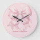 Reloj Redondo Grande Lazo Rosa de Moda Personalizado con Nombre Monogra