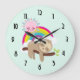 Reloj Redondo Grande Lazy Slote lindo con sol y arcoiris