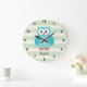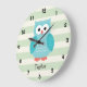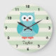 Reloj Redondo Grande Lechuza verde azulada en franjas verdes pasteles