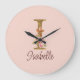 Reloj Redondo Grande Letra de nombre personalizado I Rosas rosadas con