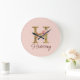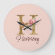 Reloj Redondo Grande Letra personalizada H Hoja de oro Rosas rosadas