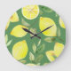 Reloj Redondo Grande Limón acuarela, patrón de papel tapiz de fruta.