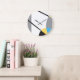 Con patrón abstracto amarillo, azul y negro, formas y líneas en este reloj de la diseñadora Lorena Depante.