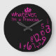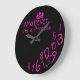 Funny rosa caliente y negro, lo que sea, soy un reloj de pared de princesa. Con una corona rosa con números en caída.