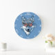 Reloj Redondo Grande Lobo azul psicodélico con las gafas de sol rosadas