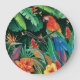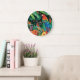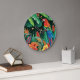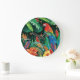 Reloj Redondo Grande Loro tropical: fondo floral exótico.