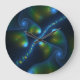 Reloj Redondo Grande Luces de fantasía Resumen Fractal amarillo verde a
