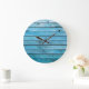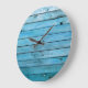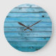 Reloj Redondo Grande Madera natural azul, fondo texturado.