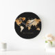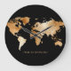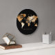Reloj Redondo Grande Mapa del mundo de las acuarelas negras y doradas