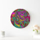 Reloj Redondo Grande Marble rosa caliente y espuma verde abstracto arte