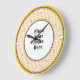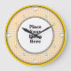 Marco de Gingham amarillo fotograma redondo detrás de las marcas de hora, Coloca tu foto aquí reloj de pared personalizado, tu foto aparecerá detrás del fotograma redondo para un aspecto verdaderamente profesional - puntos dorados blancos para marcas de hora - 12,3,6 y 9 siendo puntos más grandes, en un patrón en forma de diamante se ve genial en relojes redondos o cuadrados